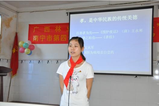 主題會將“孝”貫穿始終,以與“孝”有關的視頻、歌曲、舞蹈、古辭、典故等形式將孝文化展現表達得淋漓盡致,教室里書聲瑯瑯、歌聲陣陣,老師、家長、學生、團員都對“孝”產生了深深共鳴,情到深處幾度落淚。