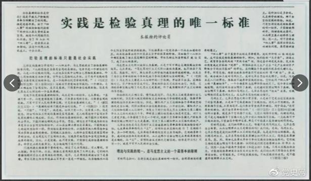 圖為《光明日報》以特約評論員的名義公開發(fā)表《實踐是檢驗真理的唯一標準》一文。
