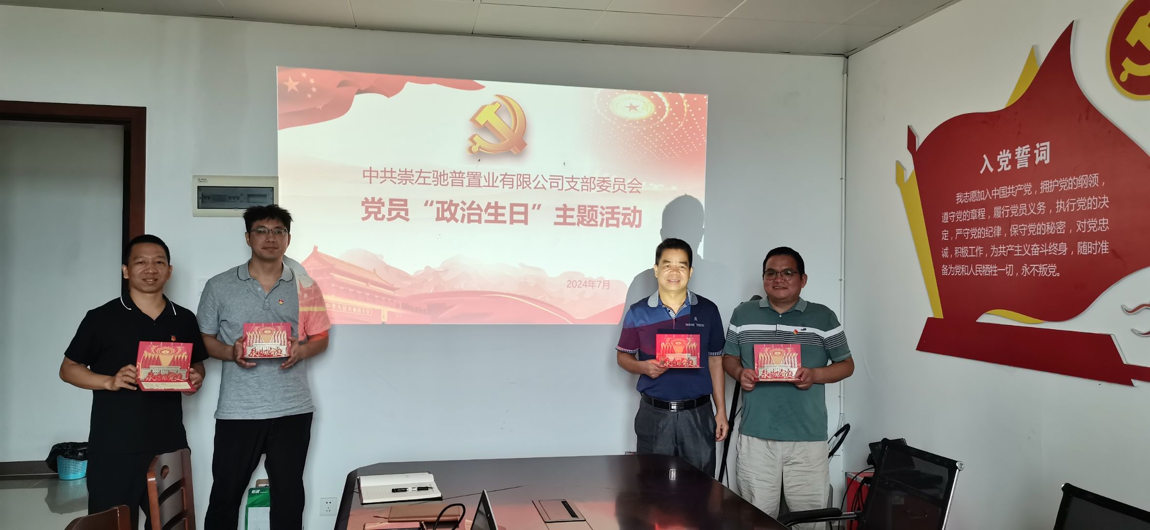 馳普公司黨支部開展“學紀正風強黨性”警示教育暨黨員“政治生日”主題黨日活動。組織全體人員集中觀看黨紀學習教育警示專題片,為六七月份入黨的黨員同志發放政治生日賀卡,送上殷切祝福,勉勵大家牢記黨員身份,不斷提升黨性修養,自覺強化黨員意識,保持政治本色,發揮先鋒作用。