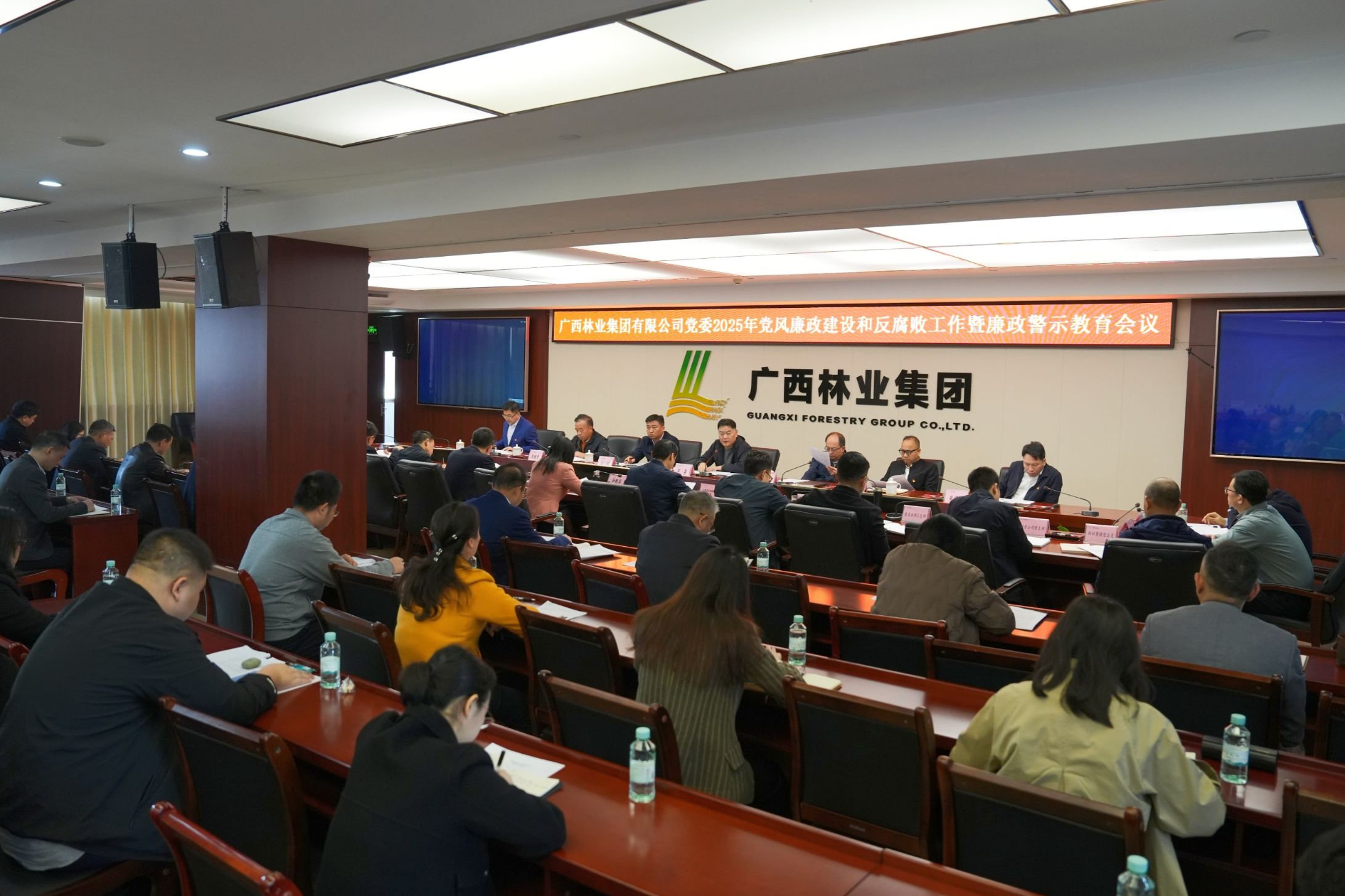 3月20日,廣林集團黨委召開2025年度黨風廉政建設和反腐敗工作暨廉政警示教育會,深入學習貫徹習近平總書記關于全面從嚴治黨的重要論述,認真落實二十屆中央紀委四次全會以及自治區紀委第十二屆五次全會精神,總結回顧了集團2024年黨風廉政建設和反腐敗工作,安排部署2025年重點任務。廣林集團黨委書記、董事長羅勇出席會議并講話,自治區紀委監委駐廣林集團紀檢監察組組長,集團黨委委員、紀委書記王剛傳達有關會議精神。
