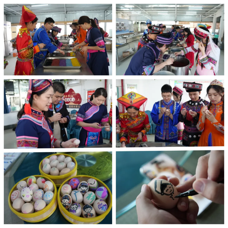 彩蛋繪制區域同樣熱鬧非凡。職工們手持畫筆,在煮熟的雞蛋上精心描繪民族服飾、木棉花等極具民族特色的符號,同時書寫“綠色發展”“民族團結”等美好祝福。彩蛋所蘊含的新生與希望,與廣林人“打通兩山轉化通道 創造綠色生態價值”的使命不謀而合,承載著大家對企業美好發展的深切期許。